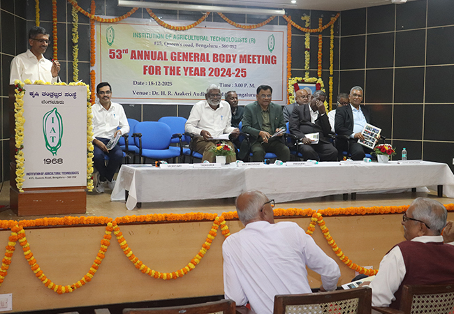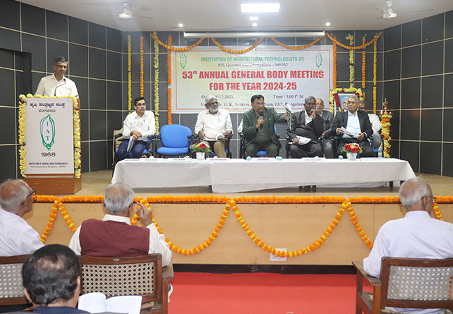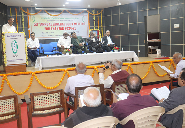 53rd Annual General Body Meeting of the Institution of Agricultural Technologists, Bengaluru for the year 2024-25 will be held on Thursday the 18th December, 2025 at 3.00 p.m. at Dr.H.R.Arakeri Auditorium, IAT, No.15, Queen’s Road, Bengaluru –560 052